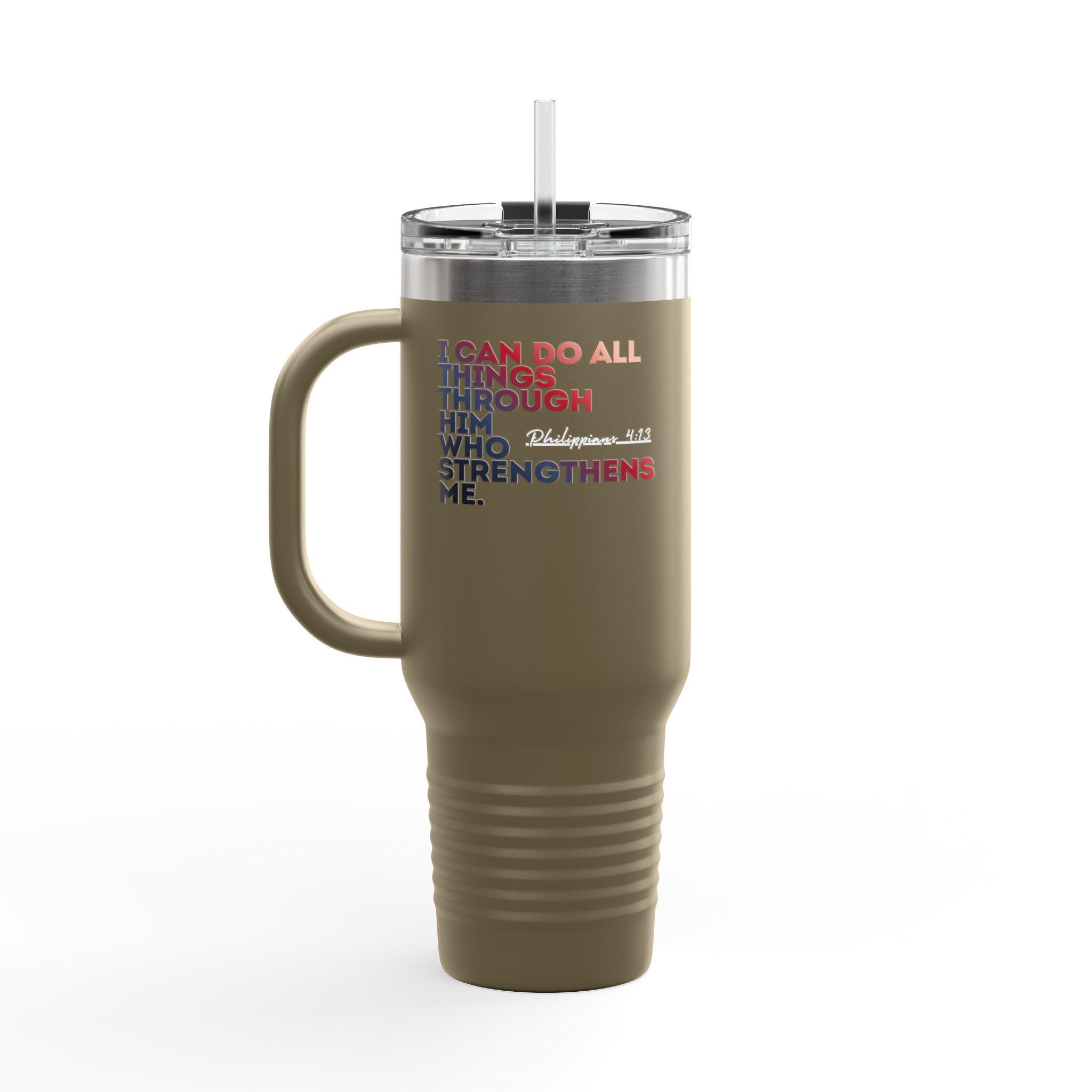 This insulated travel mug is designed for life, featuring a durable 100% stainless steel body and a straw with a lid for enhanced convenience on the go. With a generous 40oz (1.183l) capacity, it keeps your beverages at the perfect temperature thanks to its double-wall insulation. The powder-coated finish adds a sleek touch and is available in six vibrant color variants so you can find that perfect match.