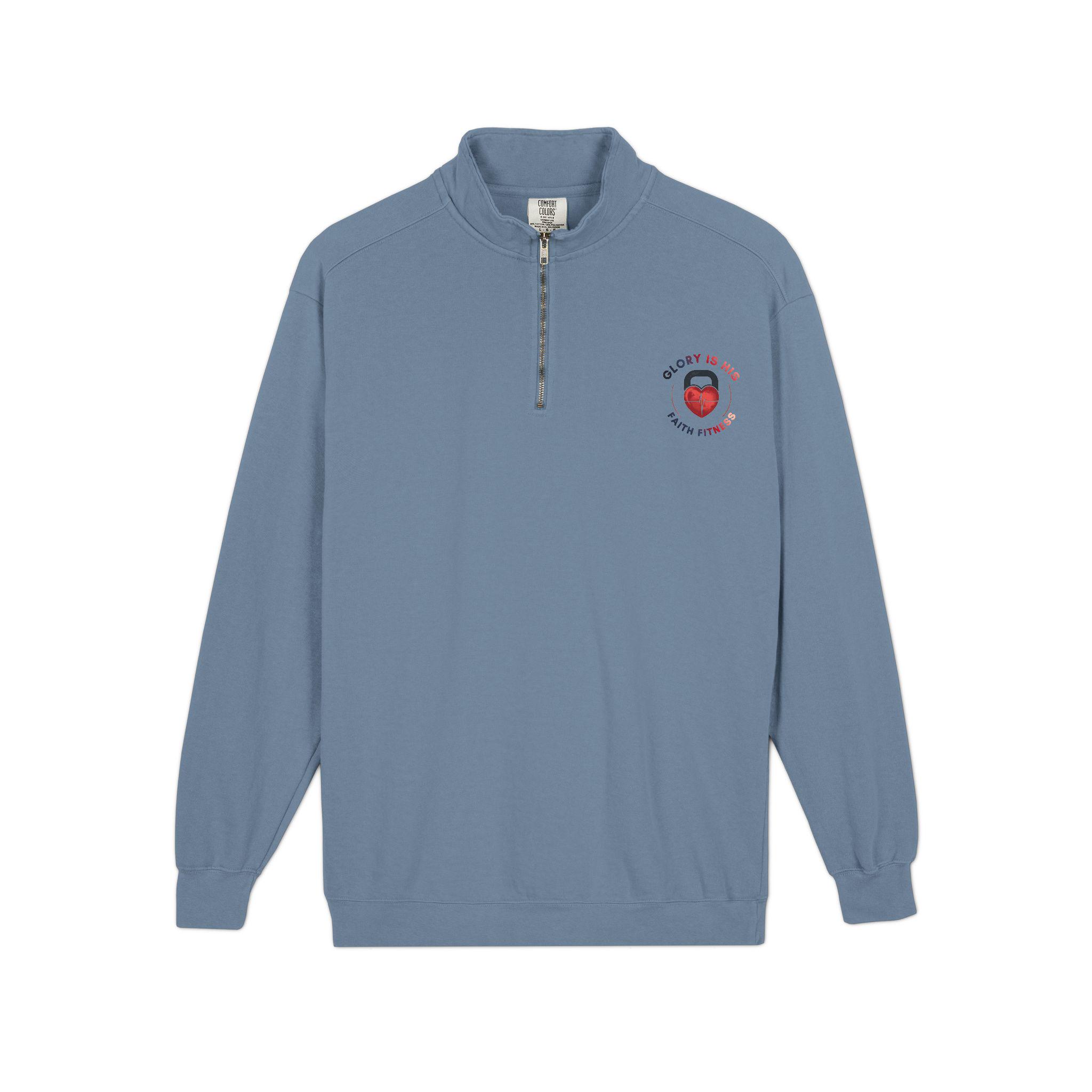 Stay warm and comfortable in this premium quarter-zip sweatshirt, crafted from a heavyweight blend of 80% ring-spun U.S. cotton and 20% polyester.